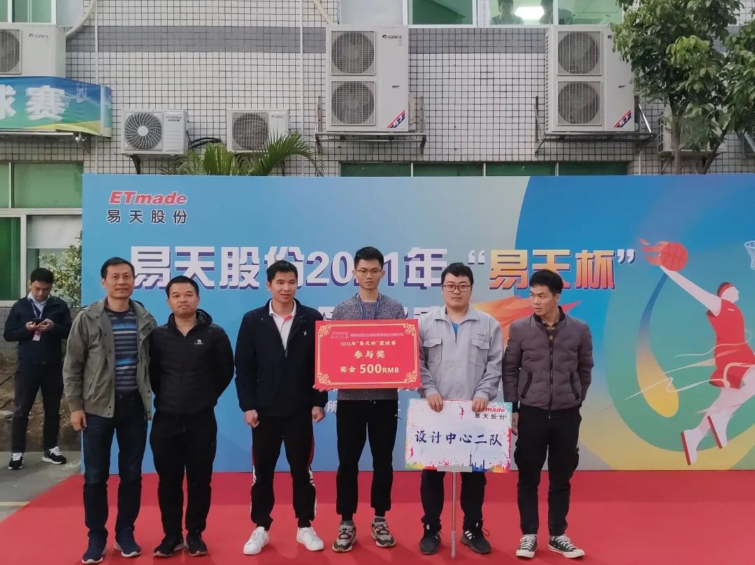 接下来颁发的是本届篮球赛的亚军,邀请公司副总经理陈飞为制造中心队颁奖,奖品为亚军银牌、奖杯、现金1000RMB。